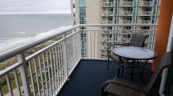 You can sit on the balcony and enjoy the Direct Ocean Front Views From the Dunes Village condo.